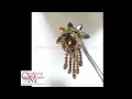 This fabulous D&E brooch is decorated with a stunning assortment of topaz rhinestones with a central, rivoli cabochon. This piece is further decorated with chain links and art nouveau ribbons surrounding the rivoli stone. Finished in gold tones, this piece is simply fabulous!