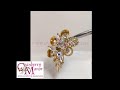 This shimmering brooch by D&E is done with glitzy, crystal stones and beads, and is accented with very decorative ribbon cups. This piece is finished in gold tones and is oh so shimmery.